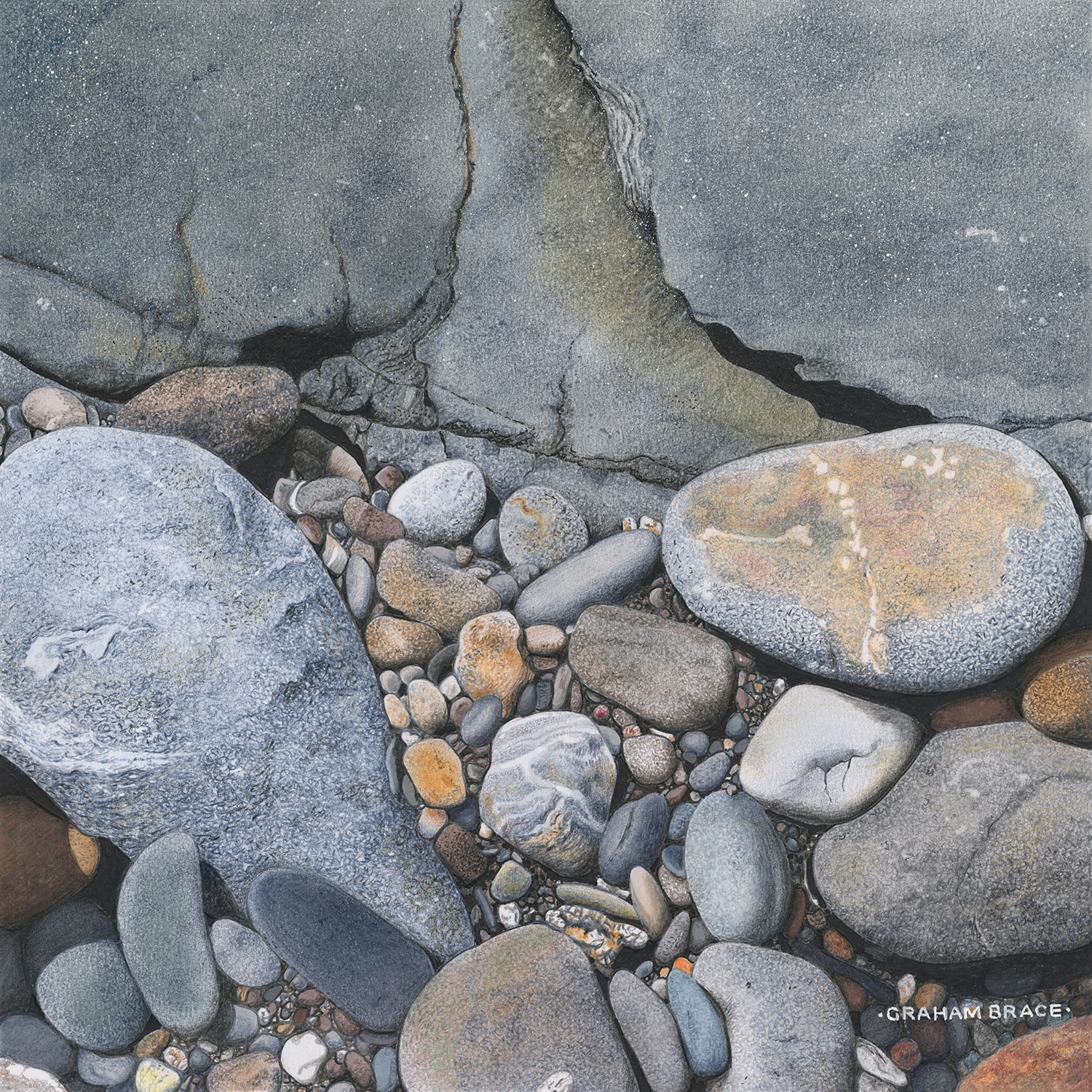Graham is a highly accomplished Pembrokeshire artist who is renowned for his skills with coloured pencils which he often supplements with soft pastels, gouache, markers and pens. On our website we are showing a selection of his beautiful compositions drawn from local geological subjects.
