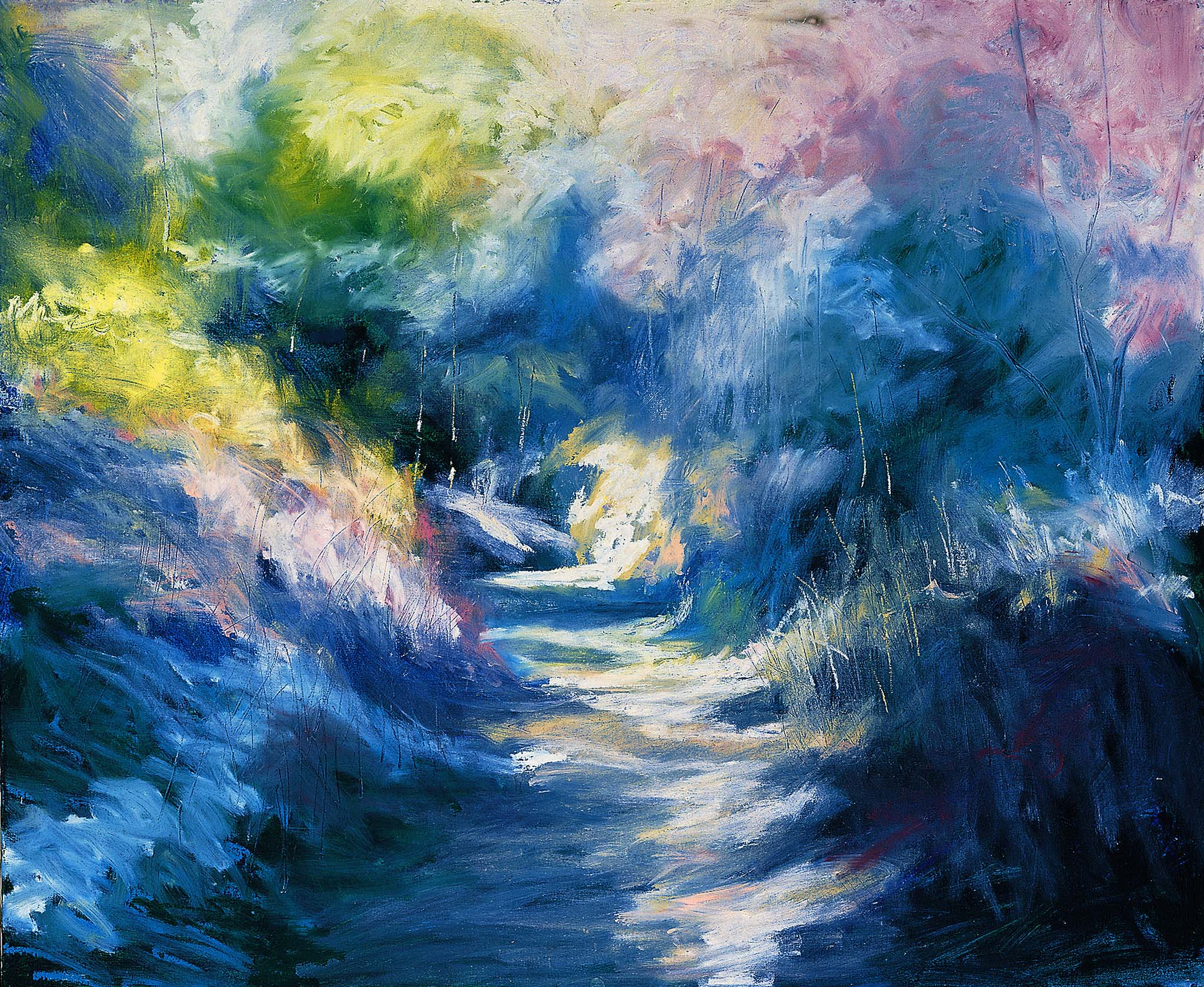 Spring Path captures the vitality of the natural world through energetic colour and fluid composition. The path becomes both a visual and emotional journey through the landscape.